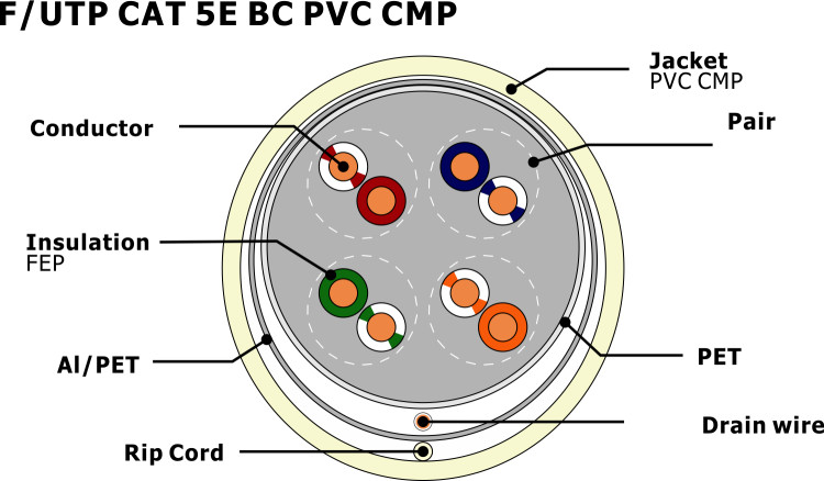 F/UTP CAT 5e BC CMP Solid 0.50mm Copper Conductor Indoor Cat5e Network Cable UL/ETL Certified NO 7112115